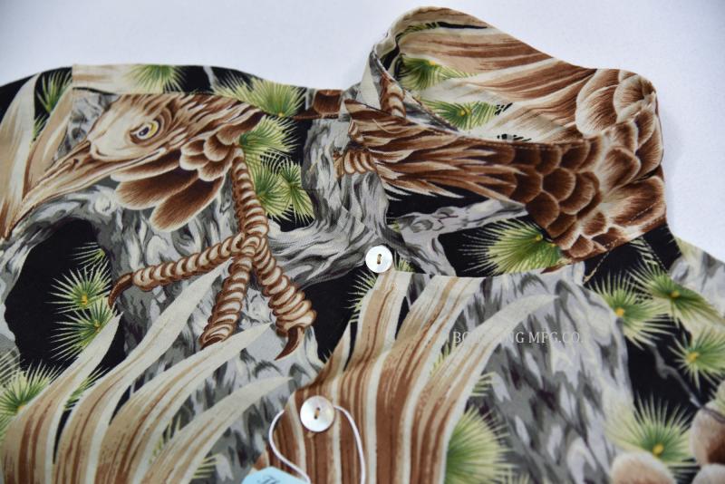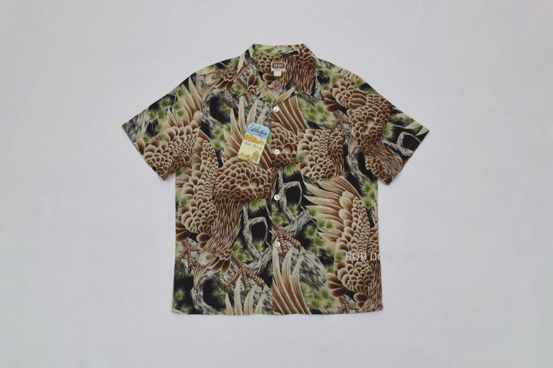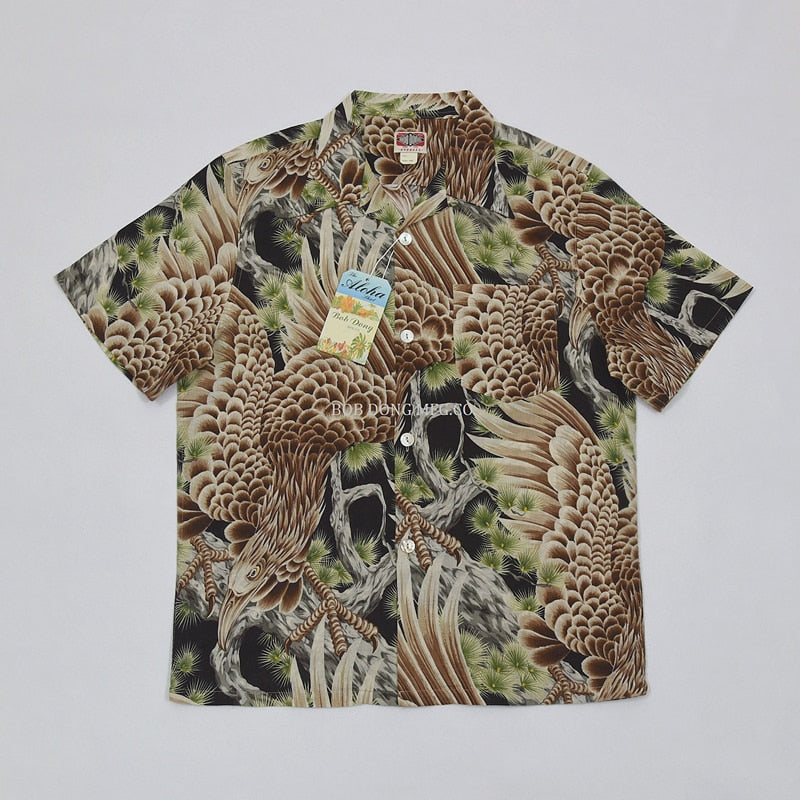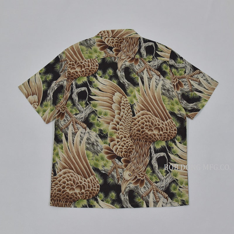 BOB DONG Big Falcon Hawaiian Shirts Retro Cotton-Flax Loop Collar Short Sleeve