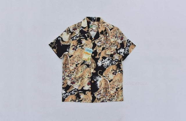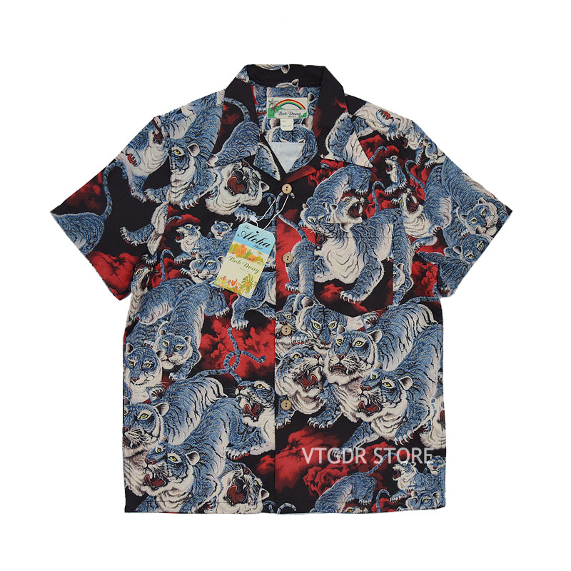 BOB DONG One Hundred Tigers Hawaiian Shirts Men Tropical Aloha Short Sleeve