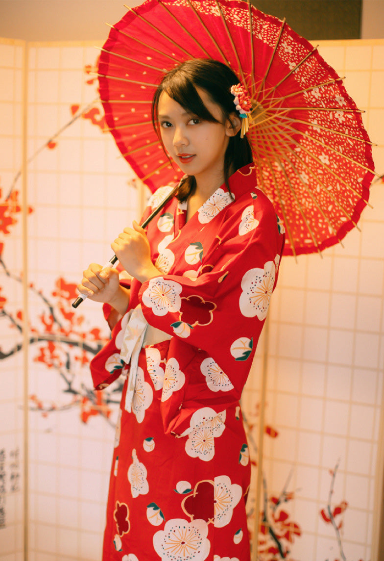 Japanese Girl Geisha Clothing Woman Kimono Dress Split Sakura Print V-neck Sexy Yukata Wedding Party Photography Performance