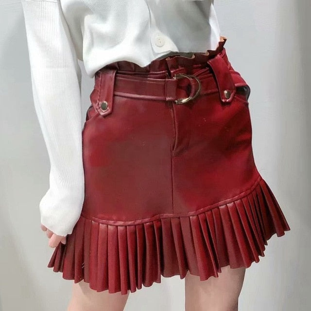 faux leather skirt ruffle: leather ruffle skirt