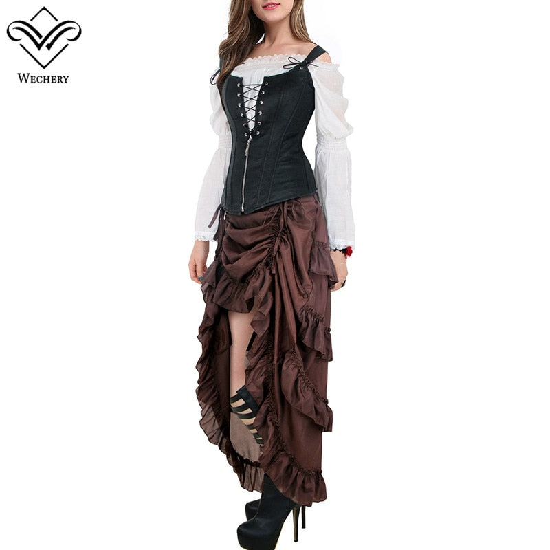 Women Skirts Sexy Long Maxi Steampunk Skirts Punk Midi Gothic Corset Skirt Lace Skirts