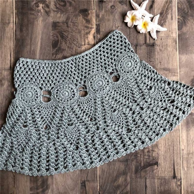 Summer Crochet Floral Handmade Hollow Out Mini Skirt Lace Swimwear
