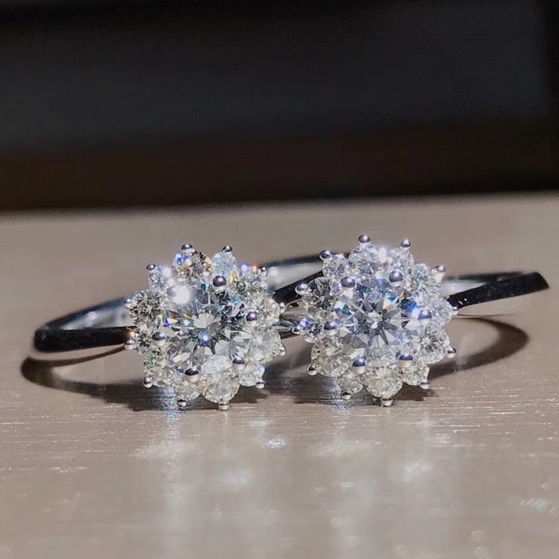 AEAW 0.3Carat 4mm Round Cut Flower Engagement&Wedding Natural Real Diamond Ring Halo Ring Genuine 18K White Gold