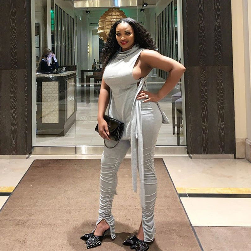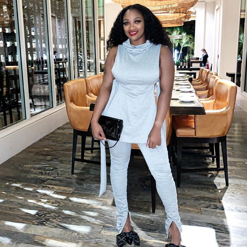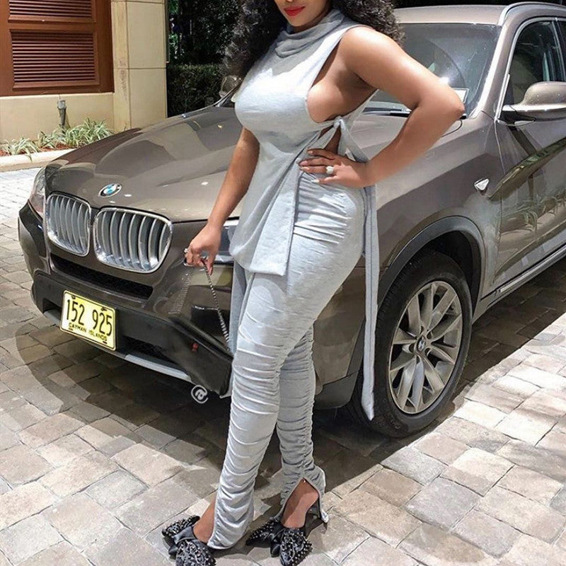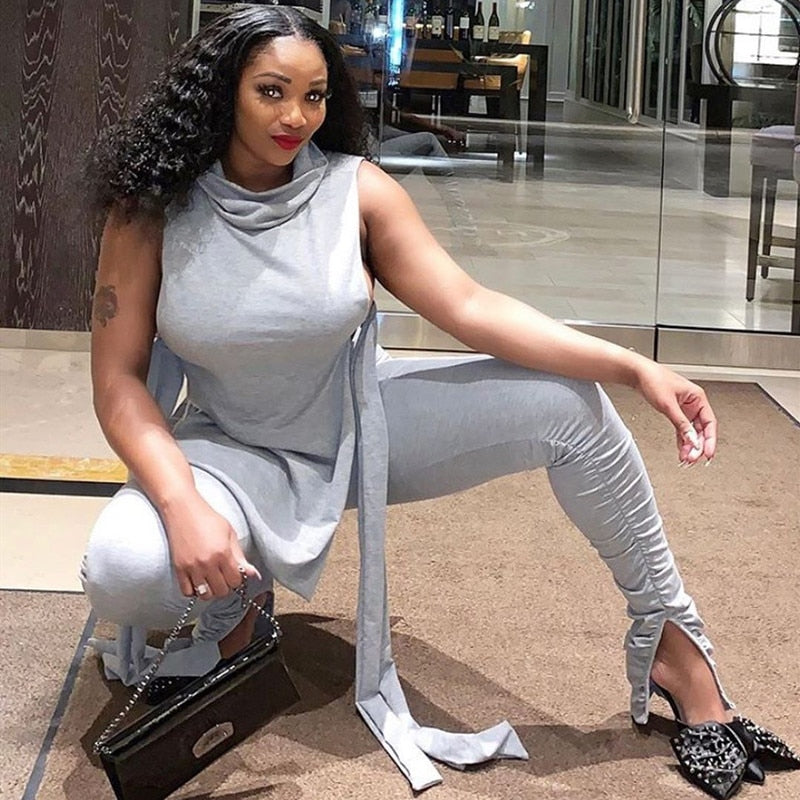 ANJAMANOR Lace Up Bodycon Bandage Sexy 2 Piece Set Women Two Piece Ruched Pants Outfits Clubwear Matching Sets 2020 D64-AF97