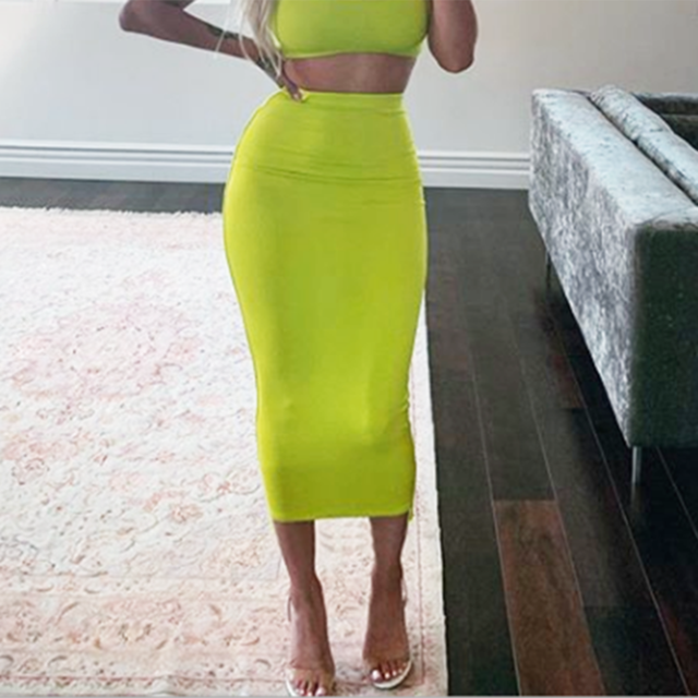 Double Layers High Waist Pencil Midi Skirt Bodycon Long Skirt Cotton Maxi Skirt White