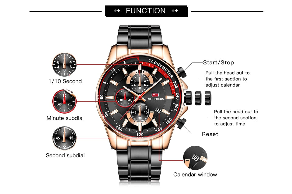 Material Feature: Imported original watch movement, A-class strap & case material.