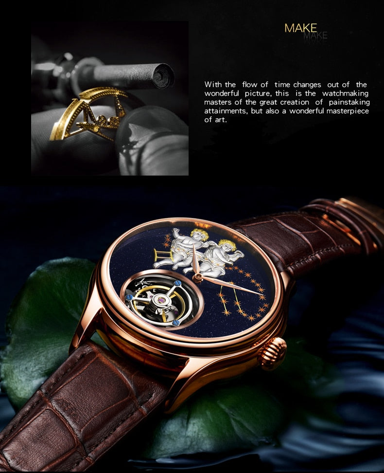 New Brand Men Watch Tourbillon Mechanical Retro Top Man Clock Stainless Steel Thin Dial Creative Trend Luxury Popular Male Watch